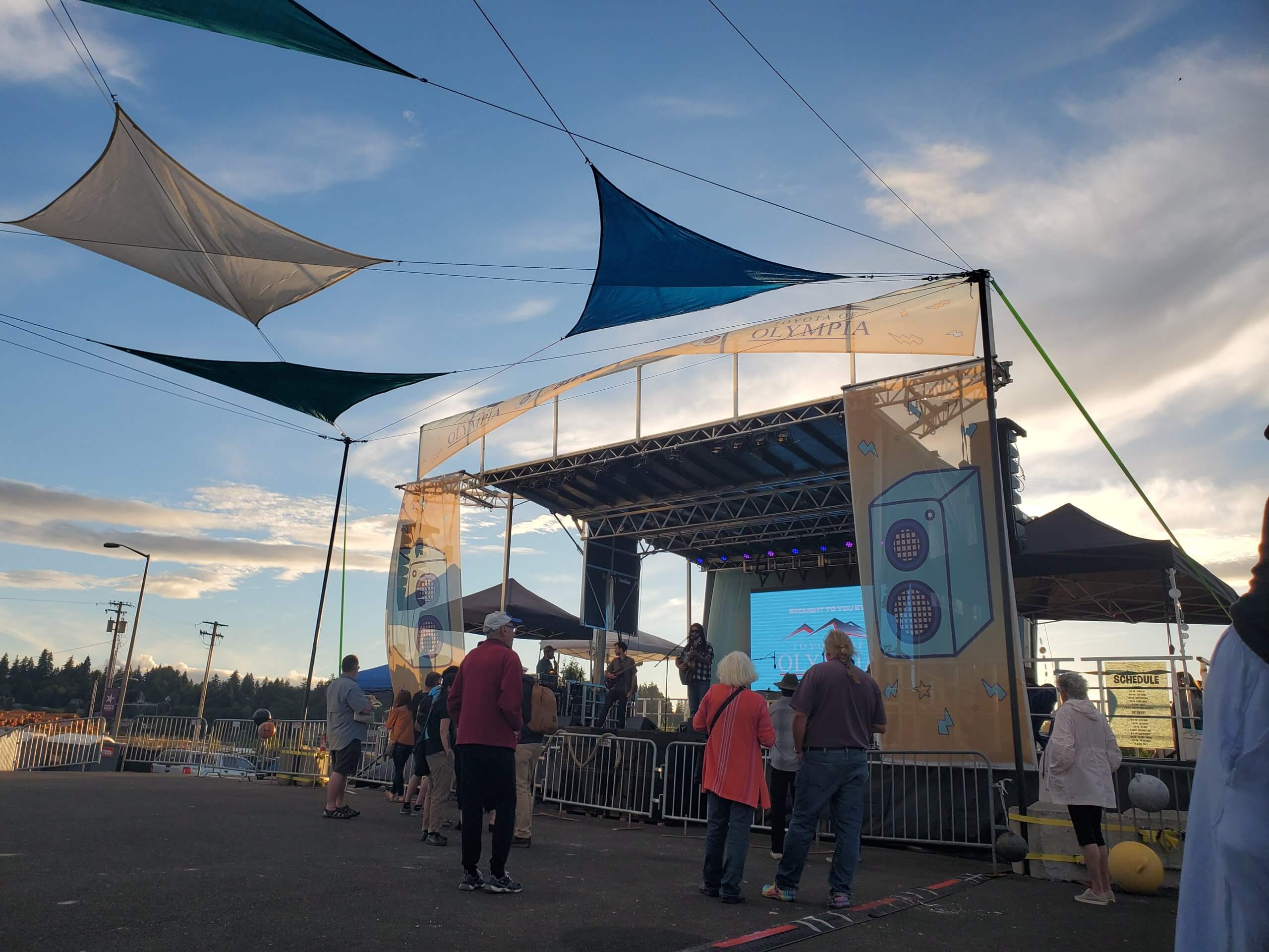 South Sound Block Party Shade SailsSpeaking of lights, last year's décor was very fun and creative with multi-colored blue and yellow hanging decorations and lights. There were chairs for viewers and game boards with bean bags for games. It was relaxing and refreshing.